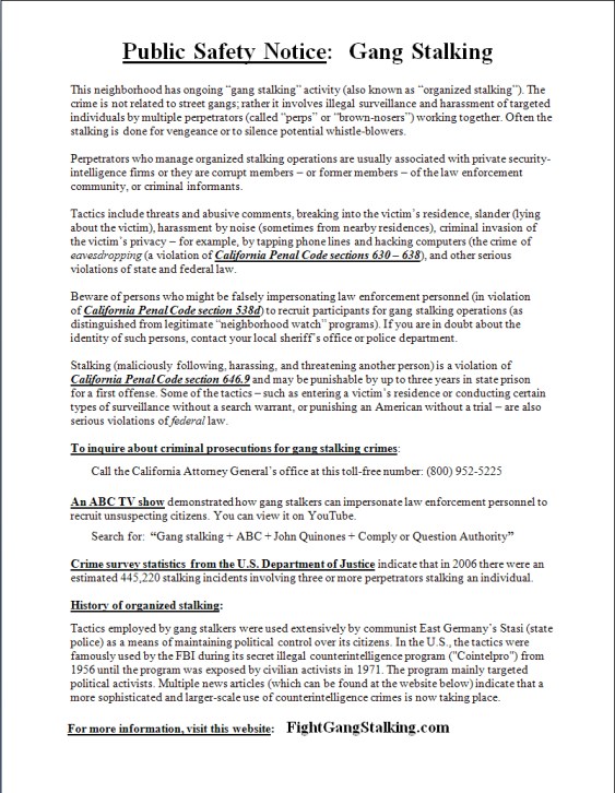 Published March 15, 2014 at 802 × 1035 in Tactics for Fighting Back Gang Stalking Flyer Like Loading... ← Previous Next →